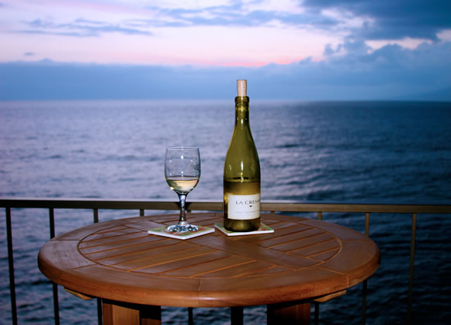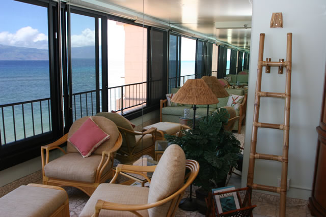• A perfect way to enjoy the sunset - teak bistro set on the lanai.